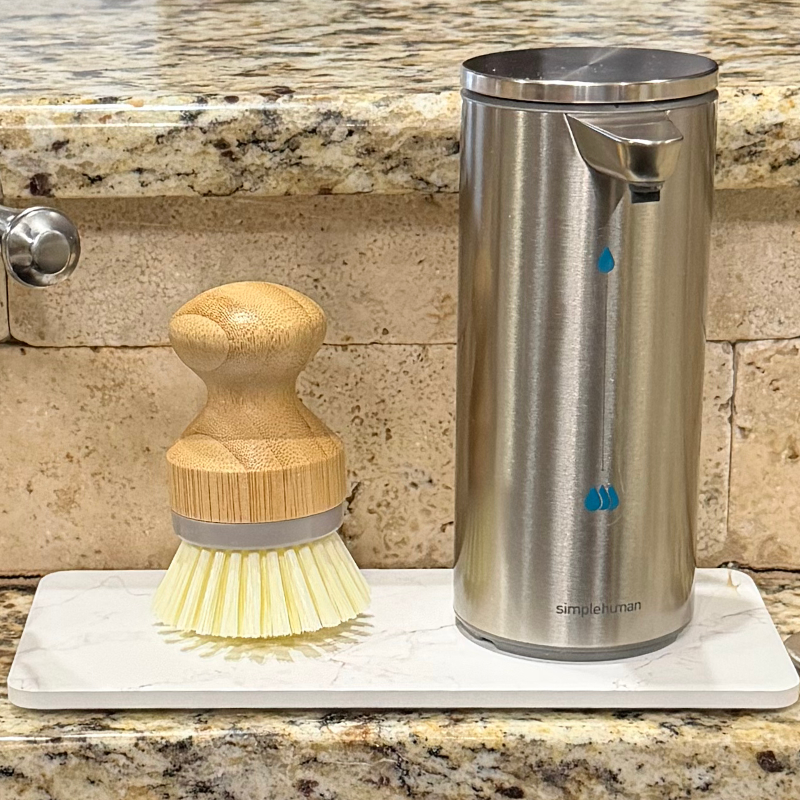 I’ve linked the exact water-absorbing stone, dish brush, soap dispenser, and drying rack I use. These are affiliate links, and I may earn a small commission if you use them to purchase.